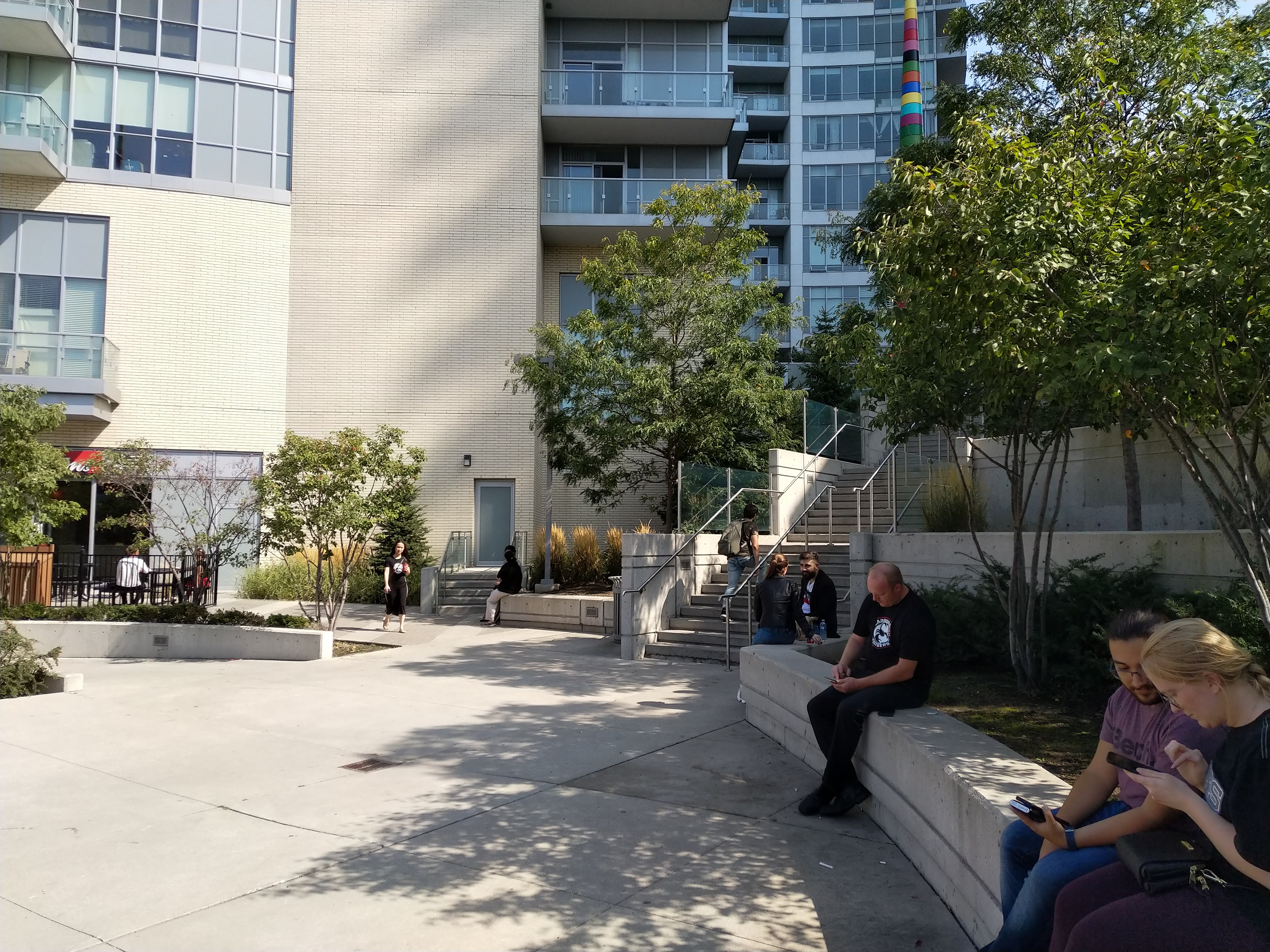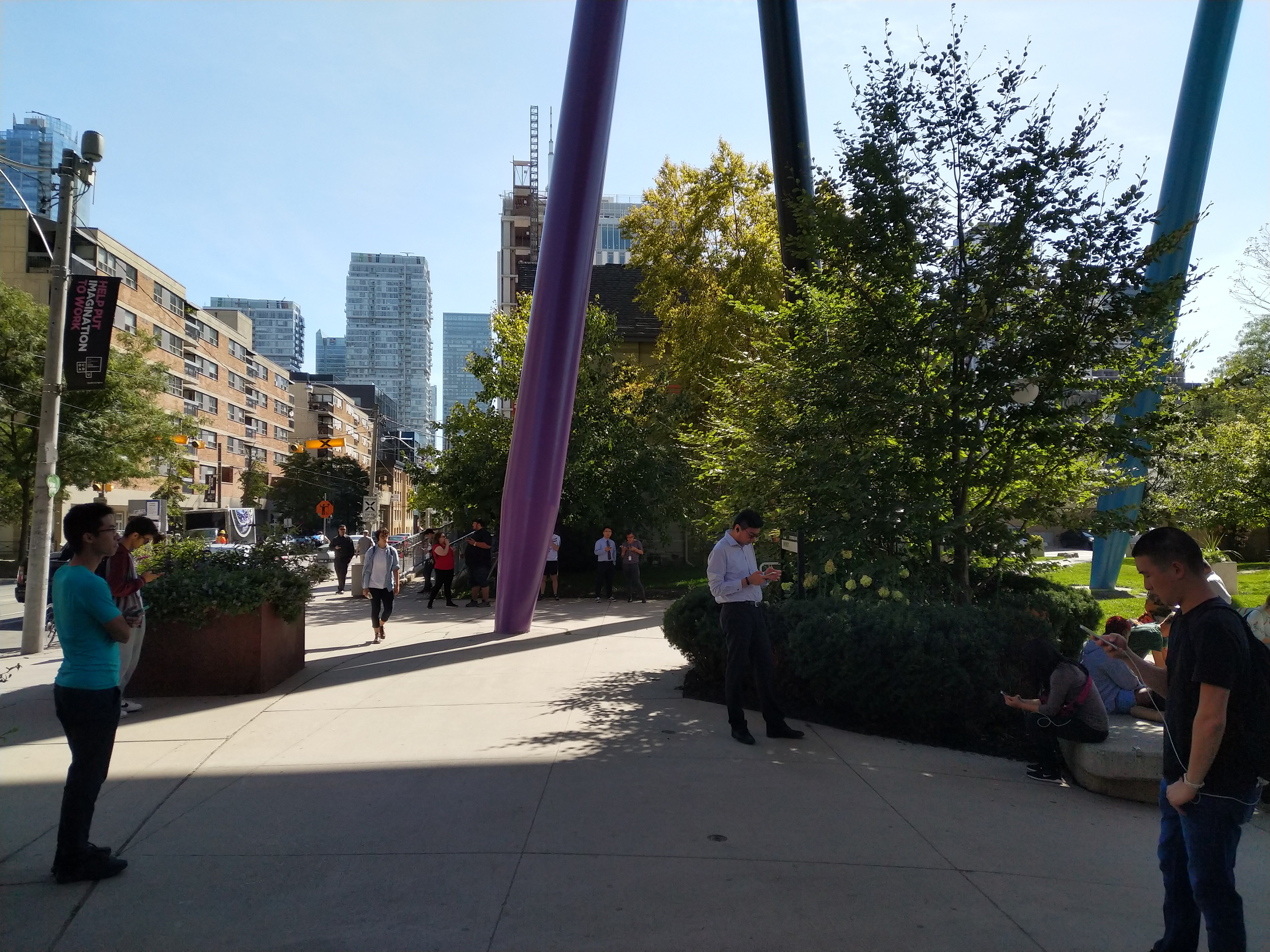 Throughout September, I participated in twelve raid events at six gyms downtown and two gyms in North York. They were well-attended, Mewtwo and Giratina being popular raids, with 10–60 trainers present at each. I was particularly struck by how much the physical environment of the location impacted player behaviour and comfort (e.g., stairs to sit on, walls/pillars to lean against, overhangs for shade), and also thought about how weird it must have been for passers-by to watch a congregation of people materialize seemingly out of nowhere.